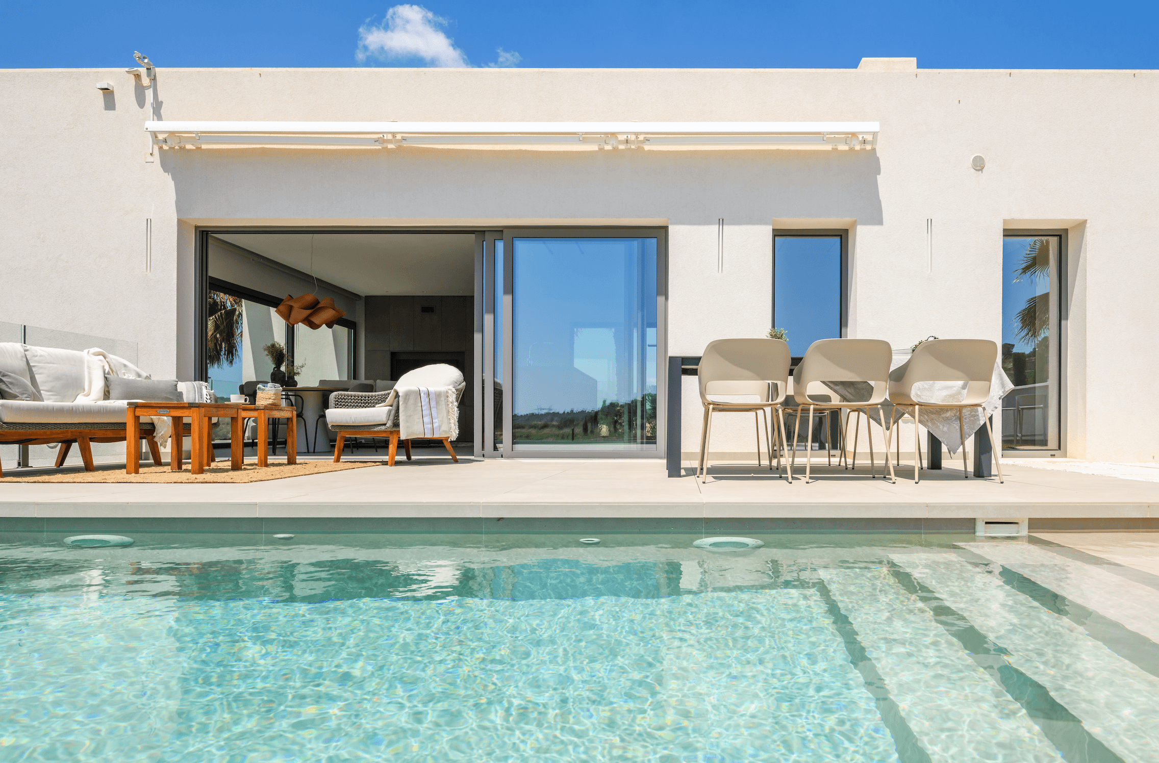 Villa Petirrojo combines modern architecture with a seamless connection to nature. Located in the exclusive Lima community of Las Colinas, it offers spacious interiors, landscaped terraces, and large windows that blend indoor and outdoor spaces, epitomizing Mediterranean luxury.